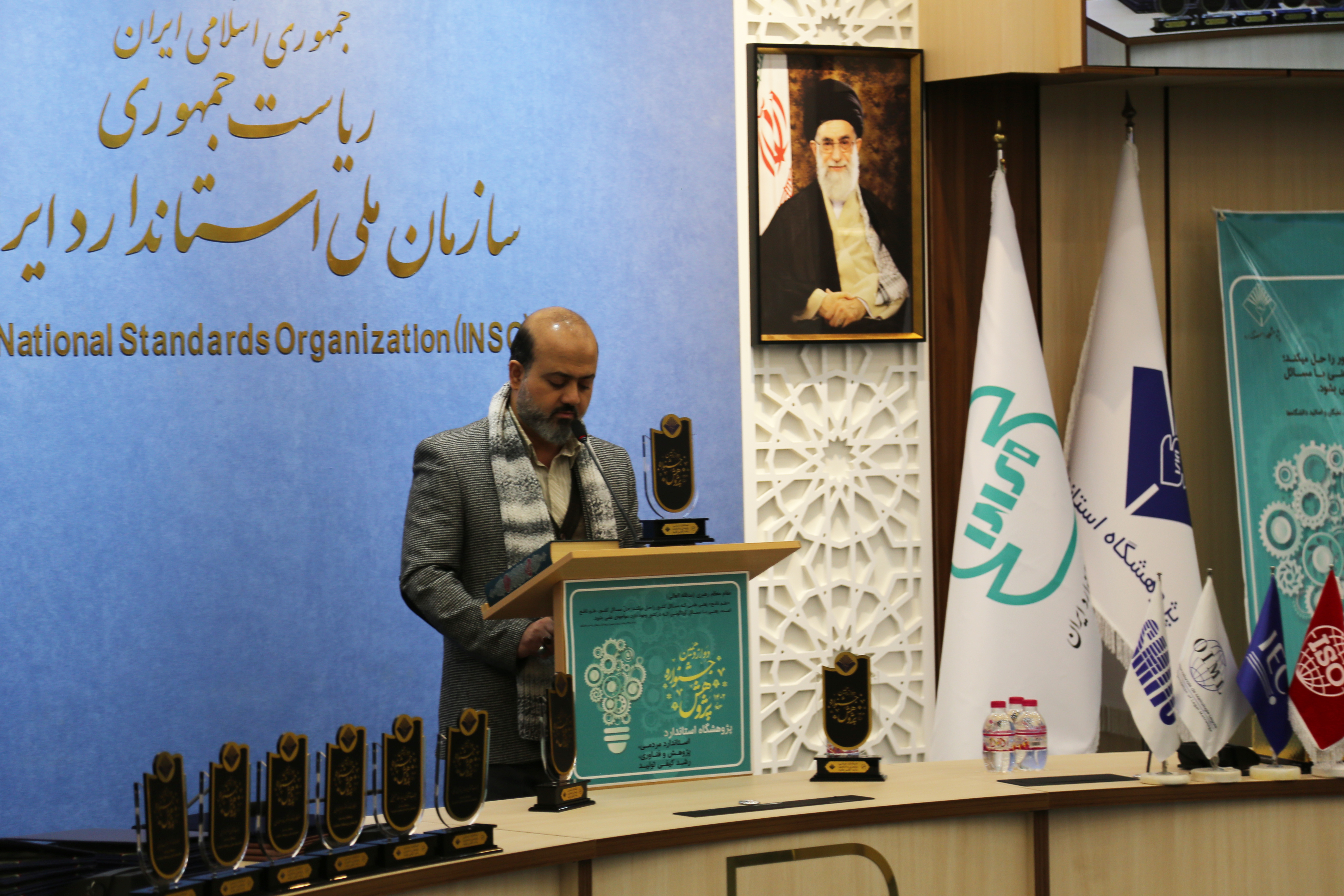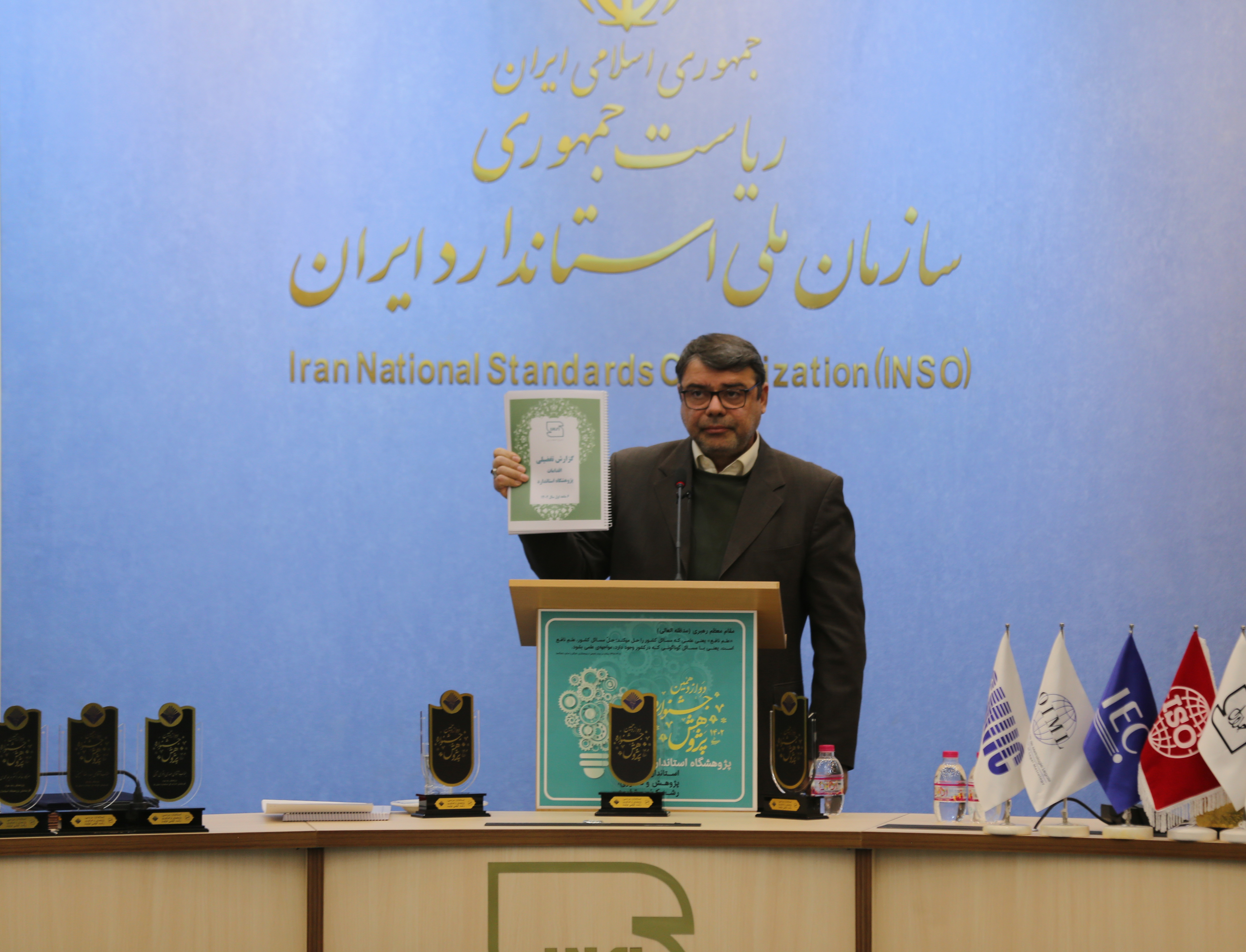 در ابتدای مراسم جناب آقای دکتر رامین انصاری (سرپرست معاونت محترم پژوهشی و فناوری پژوهشگاه استاندارد، دبیر جشنواره و رئیس کمیته داوران)،