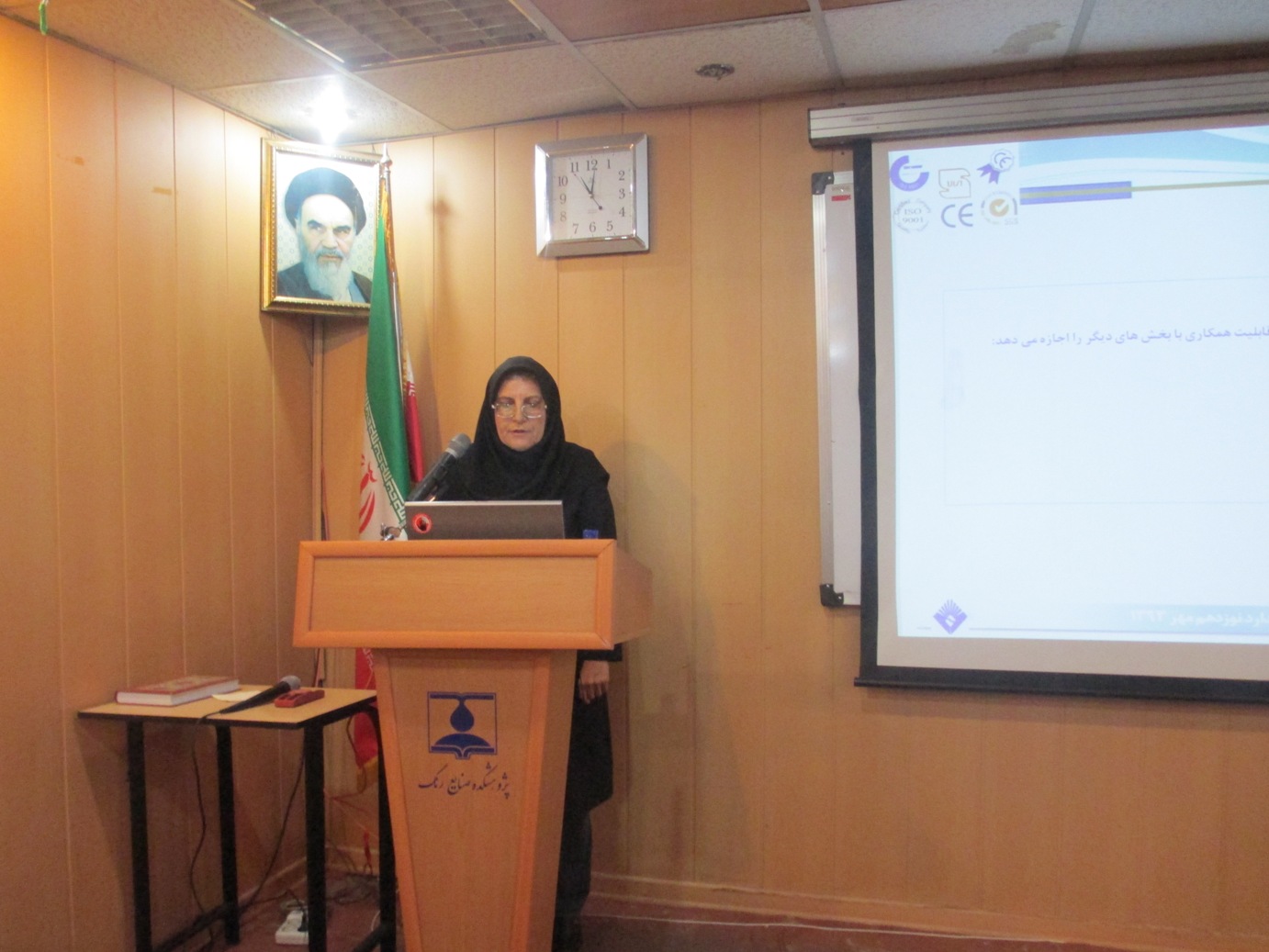 سخنران بعدی این مراسم خانم دکتر شهلا حبیبی عضو هیات علمی پژوهشکده برق، مکانیک و ساختمان نقش استانداردها در بازار رقابت را تشریح نمودند.