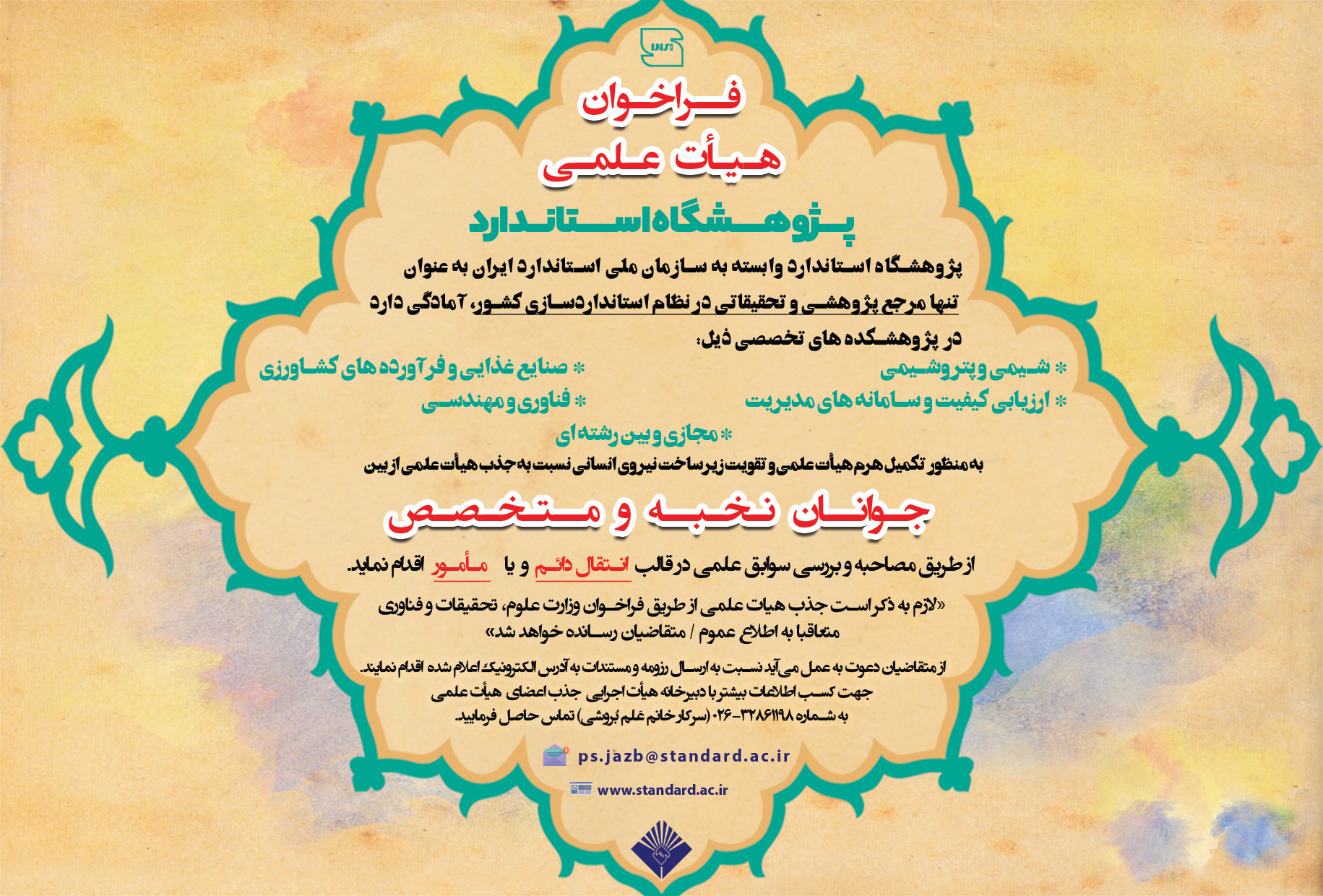 فراخوان جذب هیات علمی (انتقال/مامور) پژوهشگاه استاندارد سال 1402