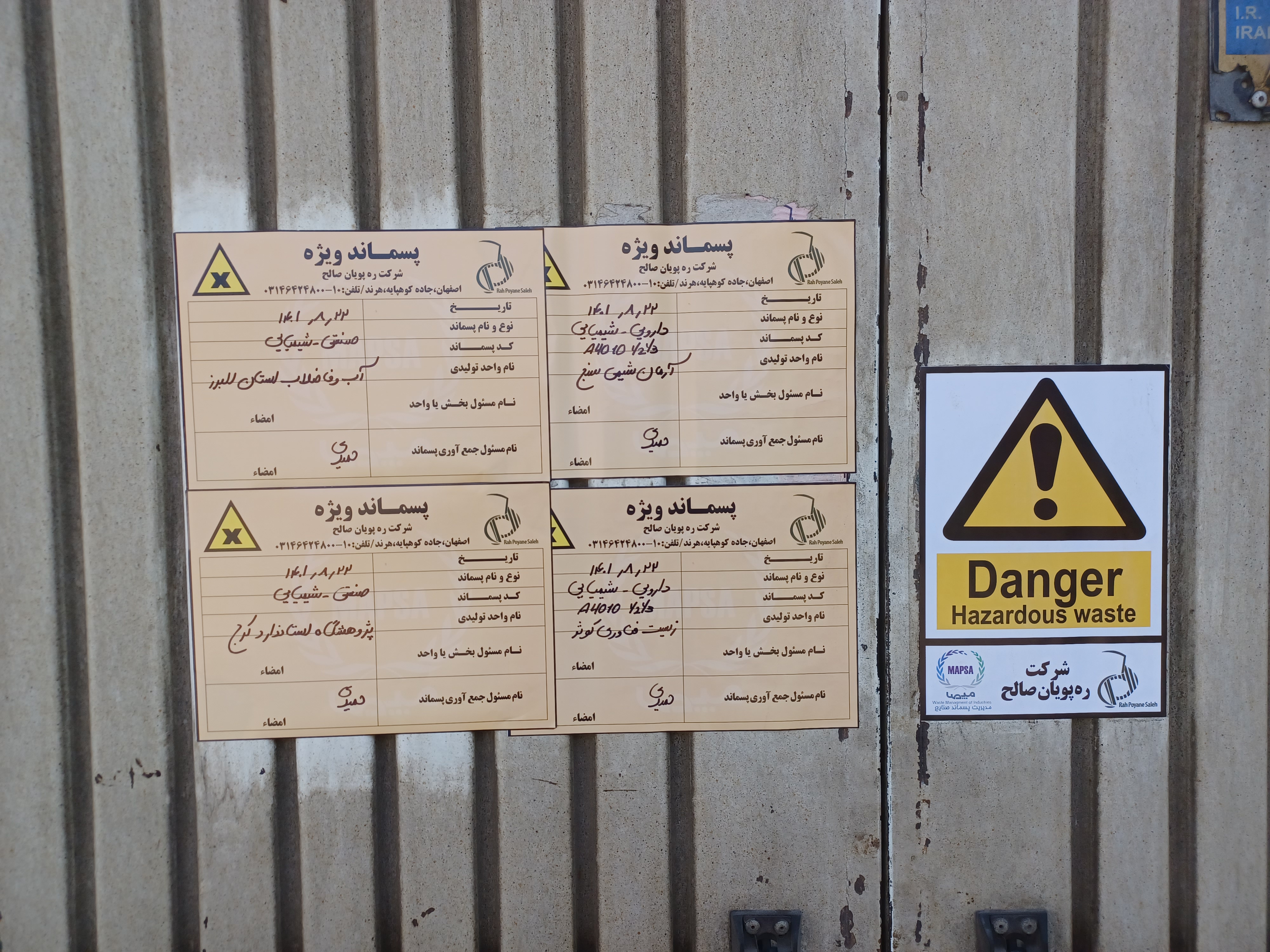 جمع آوری، تفکیک و انتقال پسماندهای شیمیایی پژوهشگاه استاندارد برای امحاء و بی خطر سازی