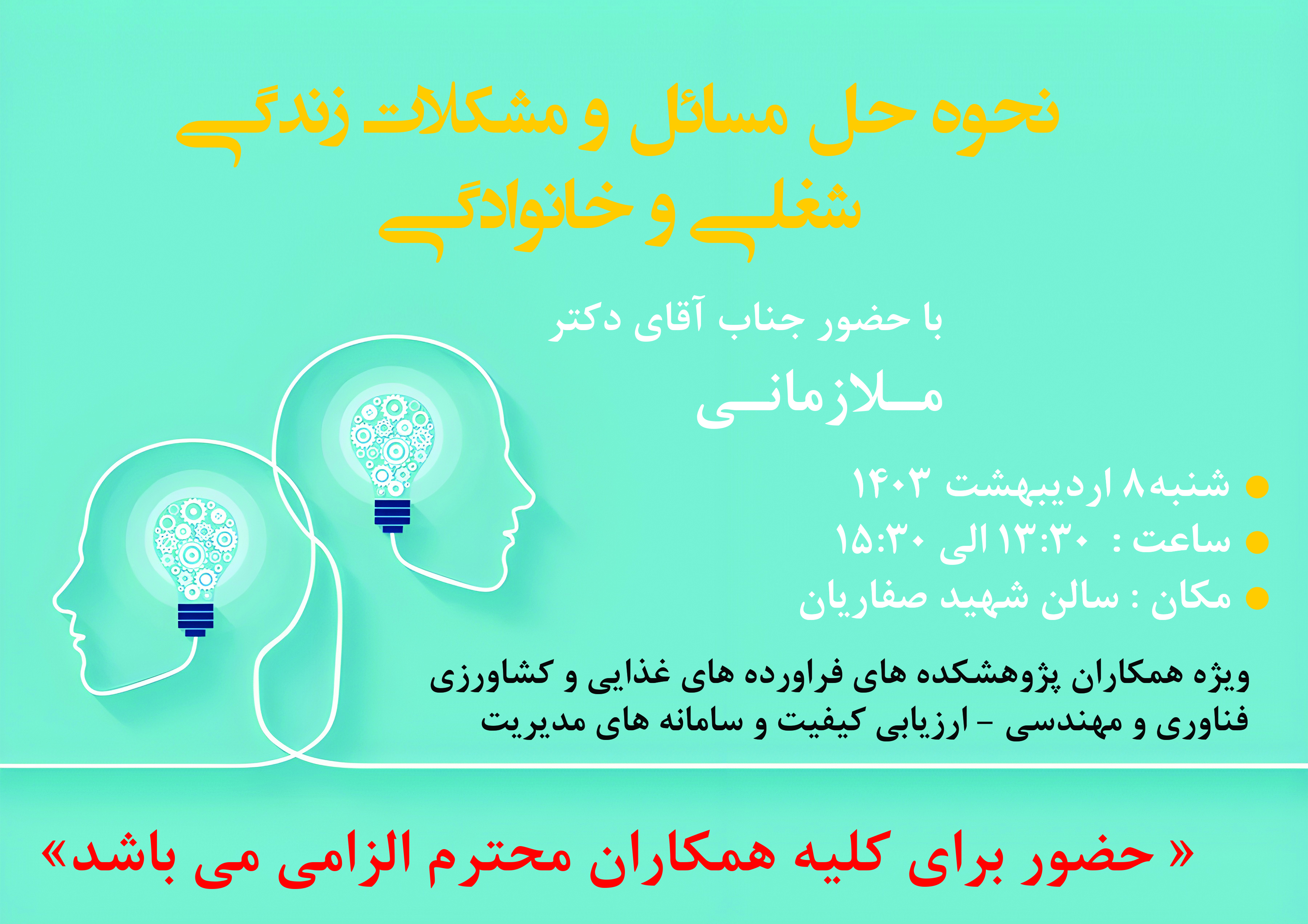 پژوهشگاه استاندارد برگزار می کند: نحوه حل مسائل و مشکلات زندگی شغلی و خانوادگی (ویژه همکاران پژوهشگاه)